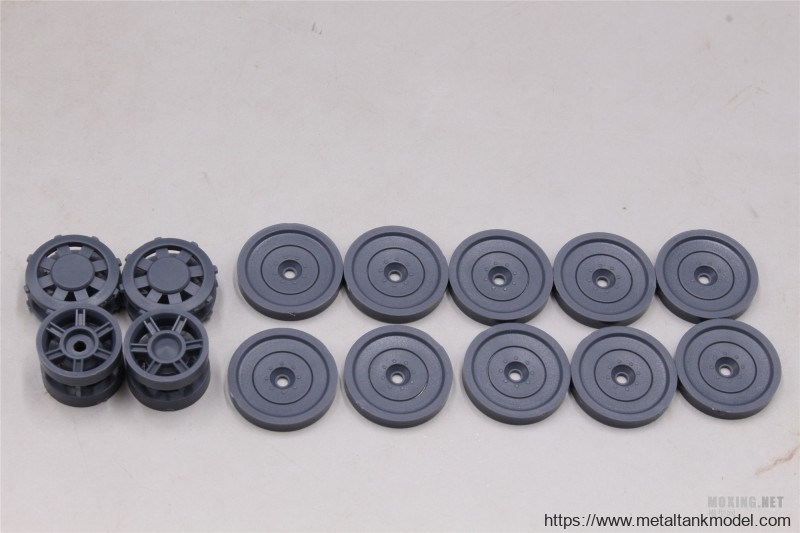 负重轮组 主动轮 诱导轮内部安装胶套, 负重轮采用了销钉模式,这里说明一点,貌似有很少一批的Q虎王 D5零件的定位柱注塑不全,我手里这批是没有这个问题的